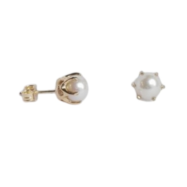 Keltakultaiset helmikorvakorut kauniissa ja erittäin tukevassa kruunuistutuksessa. Helminä valkoiset aidot makeanveden viljellyt helmet. Helmien koko 5 mm. Valmistusmateriaali on laadukas 14 karaatin keltakulta. Korvakoruissa on tukeva ja luotettava tappikiinnitys.