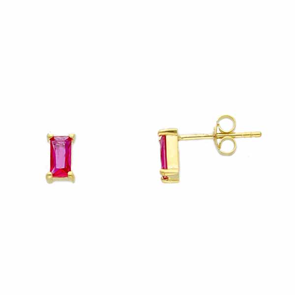 Kultaiset korvakorut säihkyvillä korukivillä. Elegantti suorakaiteen muoto yhdistettynä rubiininpunaiseen zirkoniaan luo upean kokonaisuuden. Leveys 4 mm, korkeus 7 mm.