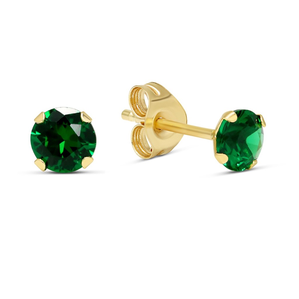Naisten 14 karaatin keltakultaiset zirkonia-korvakorut. Kultakorvakoruissa säihkyvät smaragdinvihreät zirkoniat. Nappikorvakoruissa on tukeva tappikiinnitys. Tyylikkäät kultaiset korvakorut, jotka sopivat moneen tilaisuuteen!