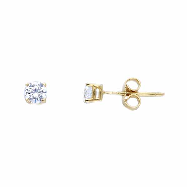 Klassiset kultaiset korvakorut zirkonia-korukivillä. Zirkonia-kiven koko on 4 mm. Korvakoruissa on tukeva tappikiinnitys. Valmistusmateriaali on laadukas 14 karaatin keltakulta.