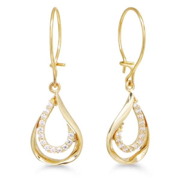 Keltakultaiset roikkuvat pisaran muotoiset kultakorvakorut kirkkailla zirkonia-korukivillä. Korvakorun korkeus on 25,5 mm. Valmistusmateriaali on laadukas 14 karaatin keltakulta.