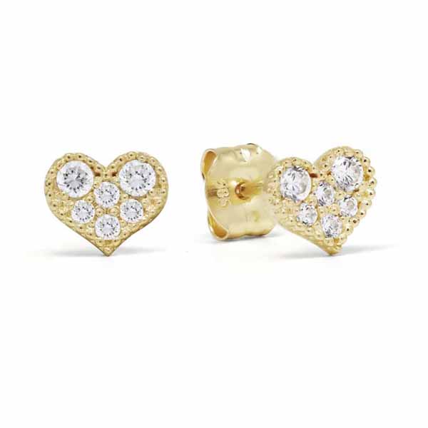 Kultakorvakorut 14k kultaa, jossa sydän koristeltu zirkoneilla.