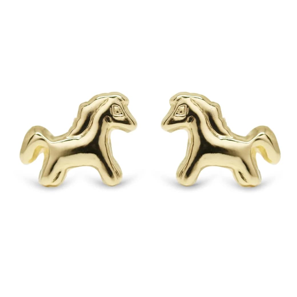 Keltakultaiset hevoskorvakorut. Siron kultakorvakorun koko on 8 x 7 mm. Valmistusmateriaali on laadukas 14 karaatin keltakulta. Korvakoruissa on tukeva tappikiinnitys.