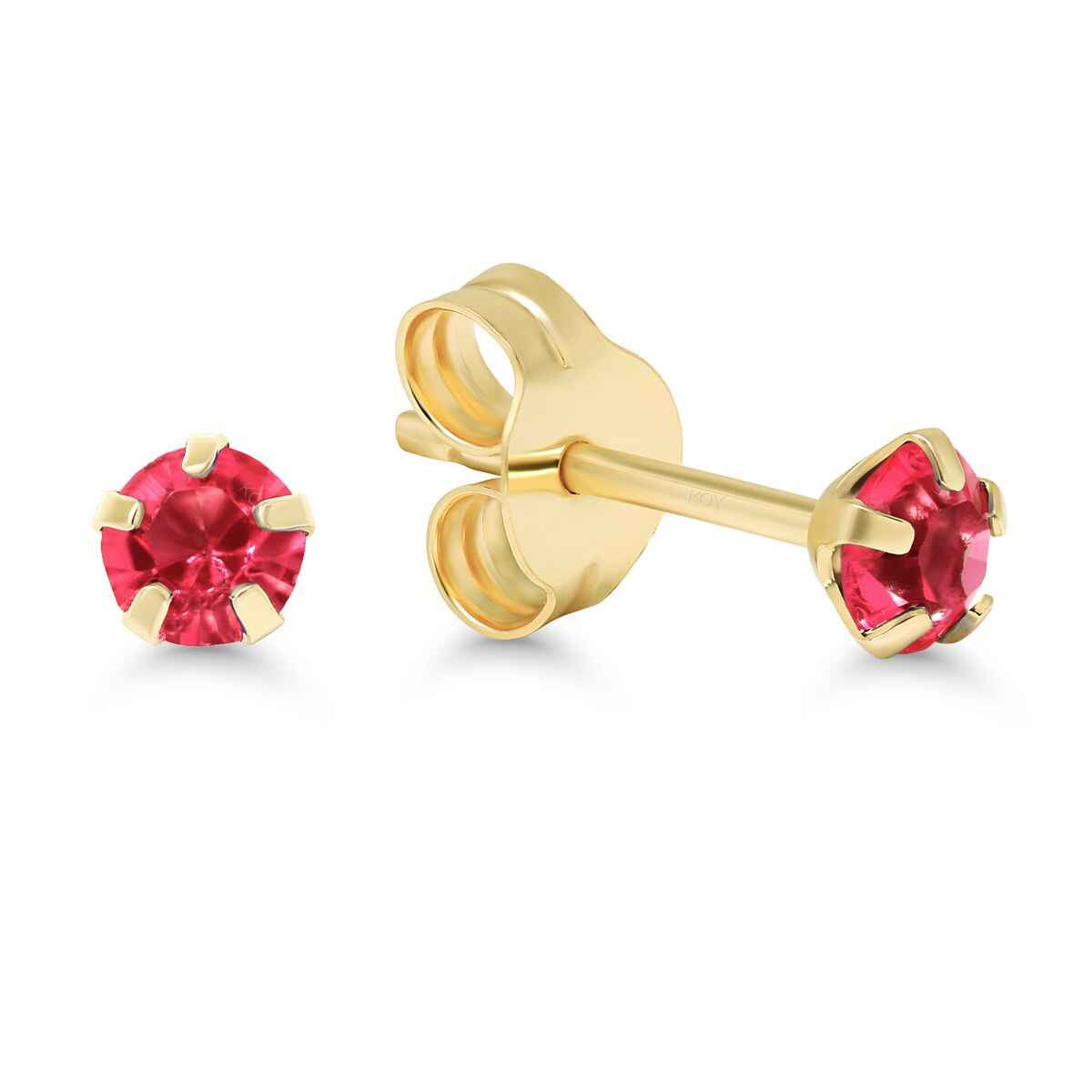 Sirot keltakultaiset kultakorvakorut pyöreällä punaisella zirkonia-korukivellä. Valmistusmateriaali on laadukas 14 karaatin keltakulta. Korvakoruissa on tukeva tappikiinnitys.