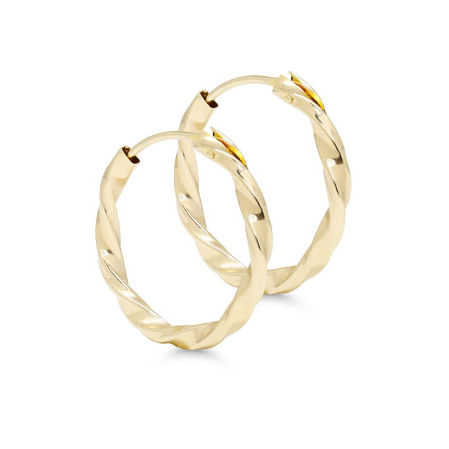 Keltakultaiset kierretyt putkirengas korvakorut 14 karaatin keltakultaa. - 14k (585/1000) kultaa - Halkaisija 14mm - Leveys 1,5mm