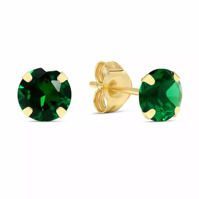 Keltakultaiset korvakorut vihreillä zirkonia-korukivillä. Valmistusmateriaali on laadukas 14 karaatin keltakulta. Korvakoruissa on tukeva ja luotettava tappikiinnitys.