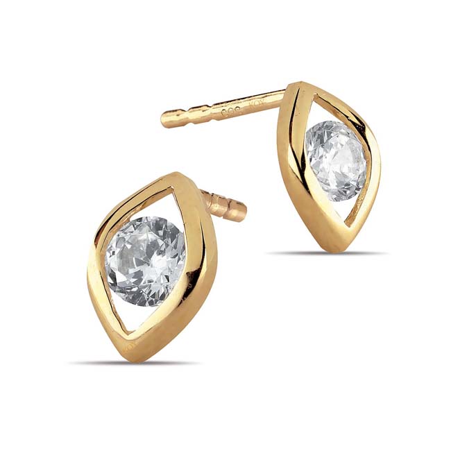 Kultakorvakorut 14k keltakultaa, joissa näyttävät zirkonit. -585/1000 (14k) kultaa -Kiiltävä -Synteettinen zirkoni