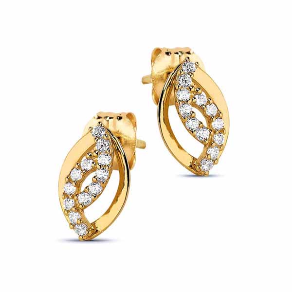 Tyylikkäät kultakorvakorut zirkoneilla -585/1000 (14k) keltakultaa -Synt.zirkonit -Kiiltävä pinta -Korkeus 9mm, leveys 6mm
