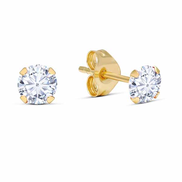 Keltakultaiset korvakorut kirkkailla zirkonia-korukivillä. Valmistusmateriaali on laadukas 14 karaatin keltakulta. Korvakoruissa on tukeva ja luotettava tappikiinnitys.