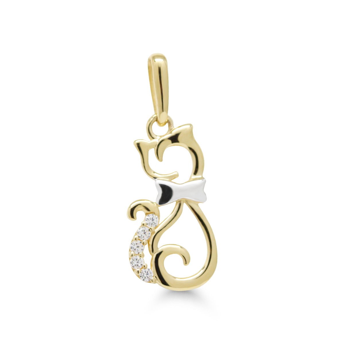 Siro kissan muotoinen kultainen riipus kirkkailla zirkonia-korukivillä koristeltuna. Valmistusmateriaali on laadukas 14 karaatin keltakulta. Riipus ei sisällä ketjua.