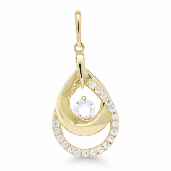 Pisaran muotoinen kultariipus kirkkailla zirkonia-korukivillä koristeltuna. Valmistusmateriaali on laadukas 14 karaatin keltakulta. Riipus ei sisällä ketjua.