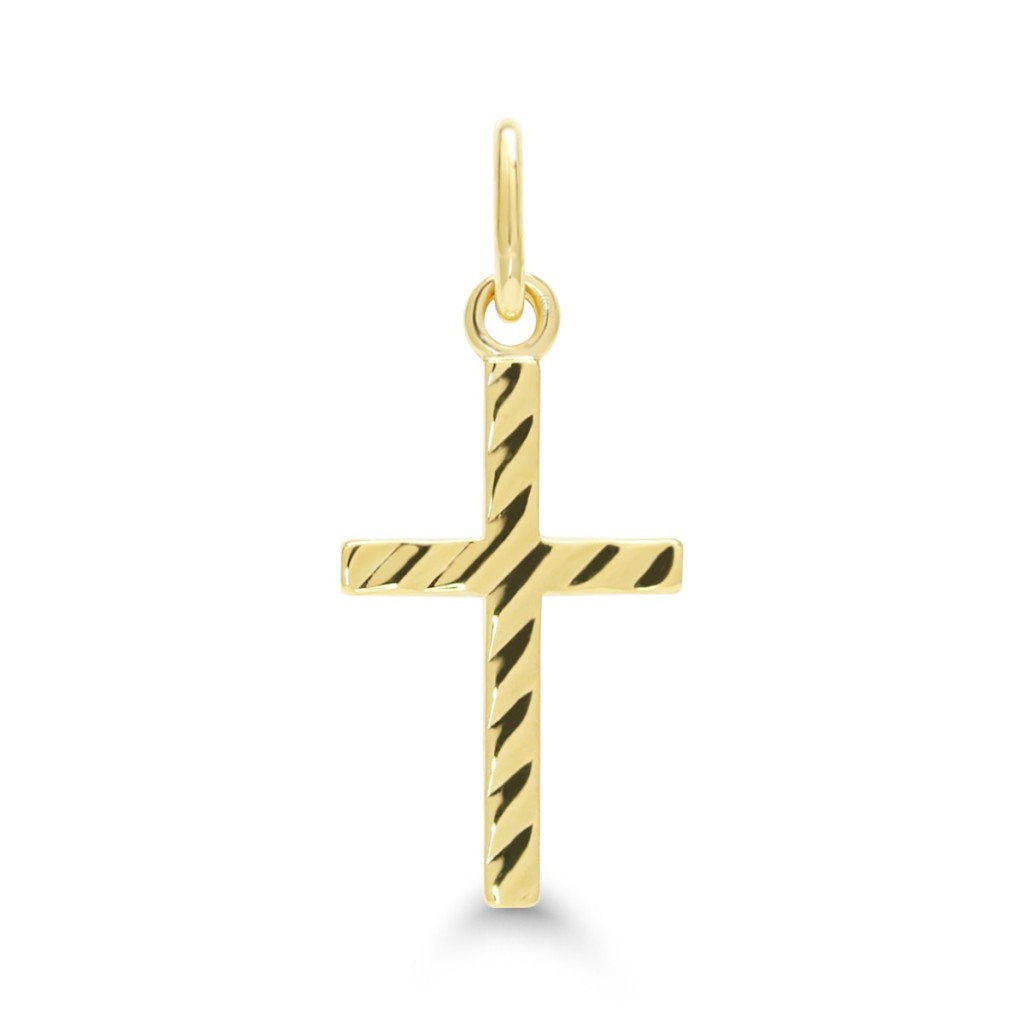 Kultainen risti kauniilla kuvioinnilla. 14 karaatin keltakullasta valmistettu ristiriipus. Esimerkiksi erinomainen kultainen rippiristi! Huomioithan, että riipus ei sisällä ketjua.