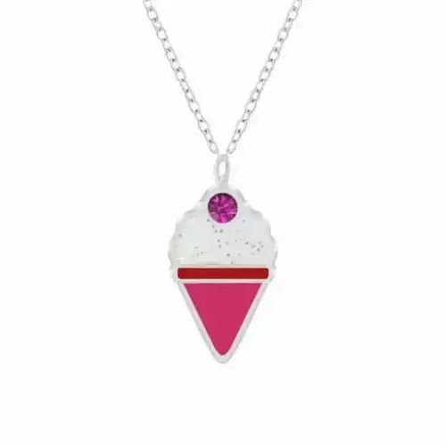 Lasten hopeinen jäätelö-riipus. Riipuksen koko on 7 x 11 mm. Ketju on säädettävissä pituuksiin välillä 36-41 cm. Valmistusmateriaali on laadukas nikkelitön 925 sterling hopea. Siro hopeariipus on ihana lahja lapselle!