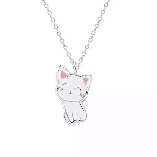 Lasten kaulakoru istuva kissa Lasten hopeinen kissa-riipus. Valkoinen kissa istuu tyytyväisen näköisenä. Riipuksen koko on 7 x 13 mm. Valmistusmateriaali on laadukas nikkelitön 925 sterling... Lue lisää