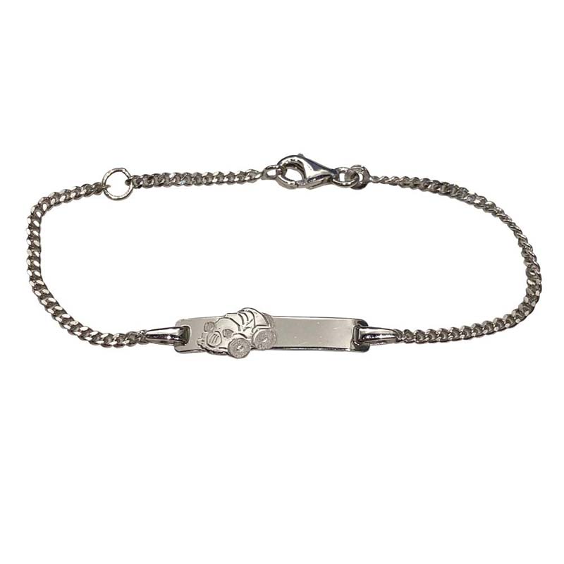 Suloinen lapsille suunnattu hopeinen laattarannekoru auton kuvalla