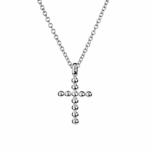 Hopeinen ristiriipus. Lempikoru Helmikki ristiriipus koostu useista pienistä toisiinsa kiinnitetyistä hopeisista helmistä. Persoonallisen, mutta samalla pelkistetyn ristin korkeus on 23 mm ja leveys on 13 mm. Riipuksessa on säädettävä 42/45 cm pitkä ketju. Helmikki rististä on saatavilla myös kullattuja sekä koristekivellisiä versioita. Helmikki ristiriipus on erinomainen rippiristi nuorelle, kokonsa puolesta se sopii erityisen hyvin rippiristiksi tytölle. Yhdistele Helmikki riipus sarjaan kuuluvien rannekorun ja korvakorujen kanssa!