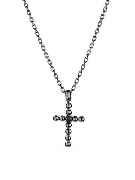 Hopeinen ristiriipus, joka koostuu useista pienistä toisiinsa kiinnitetyistä hopeisista helmistä. Persoonallisen ristin korkeus on 29 mm ja leveys on 16 mm. Tummennettua ristiä koristaa musta zirkonia. Riipuksessa on säädettävä 42/45 cm pituinen ketju. Helmikki rististä on saatavilla myös versioita ilman koristekiveä. Helmikki ristiriipus on erinomainen rippiristi nuorelle, säkenöivällä kivellä ja pehmeällä muotokielellä erityisesti rippiristiksi tytölle. Yhdistele Helmikki riipus sarjaan kuuluvien rannekorun ja korvakorujen kanssa!