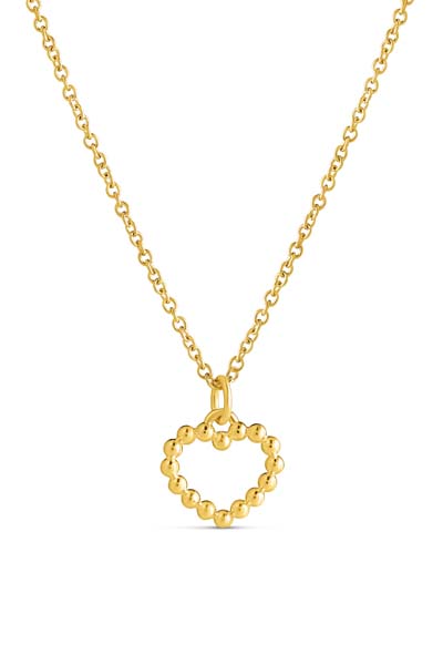 Sydämenmuotoinen naisten hopeariipus. Tämä riipus on valmistettu laadukkaasta sterling-hopeasta ja se on kullattu. Helmikki hopeariipuksen koruaiheena on suloinen sydän. joka koostu useista pienistä toisiinsa kiinnitetyistä hopeisista helmistä. Koruosan koko on 15 x 15 mm ja riipuksessa on säädettävä 42/45 cm pitkä ketju. Yhdistele riipus muiden Helmikki -sarjan korujen kanssa ja luo koruista kaunis kokonaisuus!