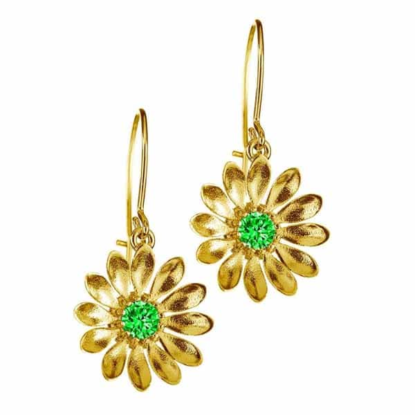 Kukka-aiheiset naisten hopeiset koukkukorvakorut. Lempikoru Kukkanen korvakorut on valmistettu laadukkaasta kullatusta 925 sterling-hopeasta. Kauniin korvakorun halkaisija on 15 mm ja sen keskellä säkenöi vihreä zirkonia. Korvakoruissa on kätevä lukollinen koukkukiinnitys. Kukkanen-sarjasta löytyvät myös tappikorvakorut. Yhdistele korvakorut muiden Kukkanen-sarjan korujen kanssa ja luo koruista kaunis kokonaisuus!
