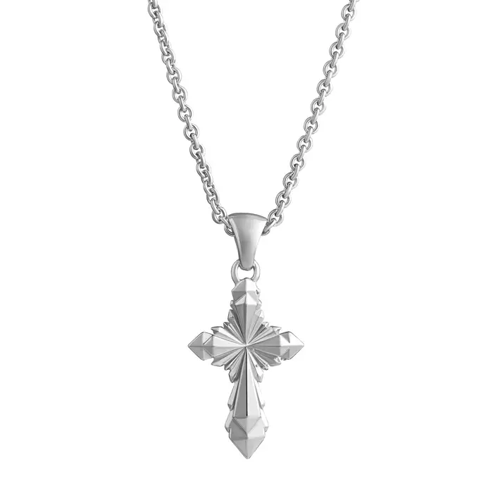 Veistoksellisesti muotoiltu hopeinen ristiriipus. Hopearistin korkeus on 30 mm ja leveys on 14 mm. Hopearistin ketju on kätevästi säädettävissä pituuksiin 45 cm ja 50 cm. Materiaali on laadukas 925 sterling-hopea.