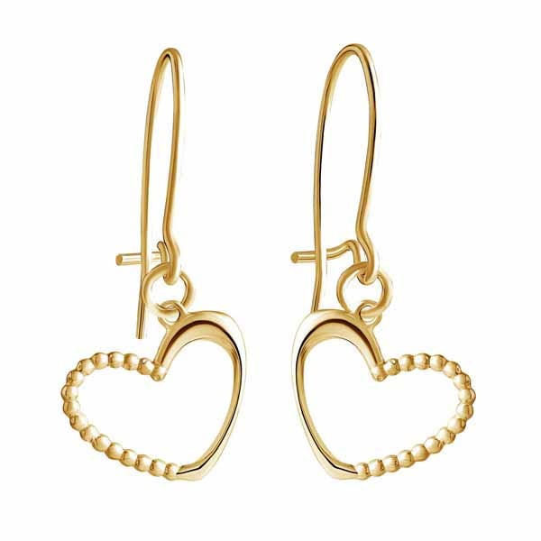 Sydämen muotoiset naisten kullatut hopeakorvakorut. Lempiystävä korvakorujen koruaiheena on suloinen sydän, joka koostuu puoliksi pienistä toisiinsa kiinnitetyistä hopeisista helmistä, ja jossa on puoliksi sileä kullattu hopeapinta. Koruosan koko on 12 x 10 mm. Korvakoruissa on lukollinen koukkukiinnitys. Nämä sydänkorvakorut on valmistettu laadukkaasta kullatusta nikkelittömästä sterling-hopeasta eli 925-hopeasta.