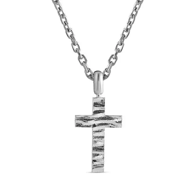 Hopeinen ristiriipus. Tässä Lempikorun Meri ristissä on upea aaltoileva pinta. Ristin pintakuviointi muistuttaa todella elävästi aaltoilevaa merenpintaa. Ristin korkeus on 26 mm ja leveys 12 mm ja riipuksessa on säädettävä 45/50 cm pitkä ketju. Tätä riipusta on saatavilla kirkkaana sekä kullattuna. Meri ristiriipus on tyyliltään suoralinjainen koru, joten se sopii hyvin miesten koruksi tai pelkistetystä tyylistä pitävälle henkilölle. Symboliikkansa puolesta koru sopii hyvin rippiristiksi ja kokonsa puolesta on myös hyvä valinta rippiristiksi tytölle. Meri ristiriipus sopii myös korulahjaksi purjehdusta tai vesiurheilulajeja harrastavalle.