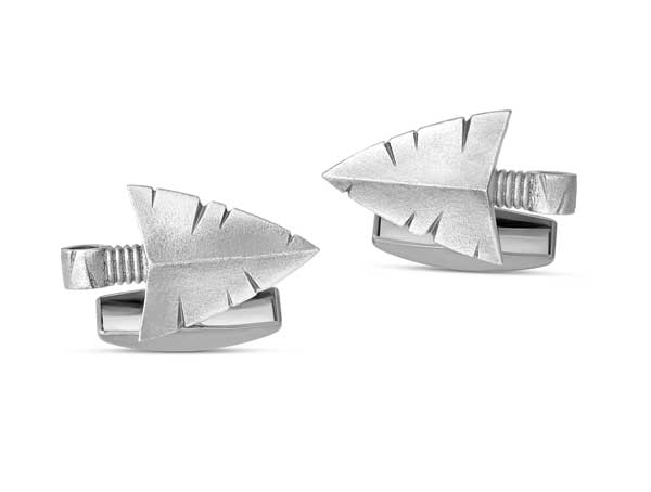 Kotimaiset Lempikoru kalvosinnapit. Metsästäjä-sarjan tyylikkäät kalvosinnapit, missä on pienet nuolenkärjet. Metsästäjä sarja nimensä mukaan on keskittynyt metsästysaiheeseen, tosin kalvosinnappien henki vie satojen vuosien päähän. Nuolenkärki symboloi rohkeutta ja voimaa, joten se sopii täydellisesti kaikenikäisille miehille. Tämä Metsästäjä kalvosinnapit on erinomainen lahja esimerkiksi valmistujaislahjaksi ja sopii täydellisesti yhteen Metsästäjä solmiopitimen kanssa. Koruosan koko on 25 x 15 mm. Koru on valmistettu hopeasta.