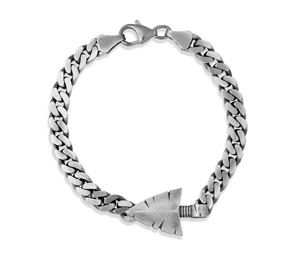 Kotimainen Lempikorun miesten rannekoru. Metsästäjä rannekoru on tyylitelty nuolenpää, joka on aseteltu tyylikkäästi panssariketjun jatkeeksi. Metsästäjä rannekoru nimensä mukaan on keskittynyt metsästysaiheeseen, tosin rannekorun henki vie satojen vuosien päähän. Nuolenkärki symboloi rohkeutta ja voimaa, joten se sopii täydellisesti kaikenikäisille miehille. Tämä Metsästäjä rannekoru on erinomainen lahja esimerkiksi valmistujaislahjaksi. Koruosan koko on 16 x 28 mm ja ketjua saa kahdessa eri mitassa 19 ja 21 cm. Koru on valmistettu hopeasta.