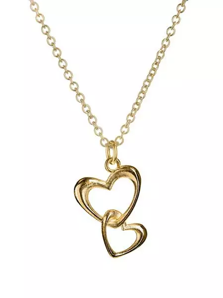 Kaunis naisten kullattu hopeinen kaulakoru. Lempikoru Onnenkantaja -riipuksen aiheena on herkät sydämet, jotka kietoutuvat toisiinsa. Sydämet muistuttavat, että jokainen pieni onnellinen hetki on tärkeä. Riipuksen koko on 16 x 21 mm ja hopeisen ketjun pituus on 45 cm. Kaulakoru on valmistettu laadukkaasta 925 sterling-hopeasta ja riipus on keltakullattu. Yhdistele Onnenkantaja riipus samaan sarjaan kuuluvien korvakorujen kanssa!