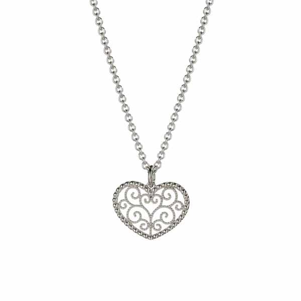 Naisten hopeariipus, jossa koruaiheena on koristellinen sydän. Sydän on klassinen ja suosittu koruaihe, joka sopii hyvin lahjaksi tärkeälle ihmiselle. Tämä Lempikoru Sydämellinen riipus on valmistettu laadukkaasta 925 sterling-hopeasta. Koruosan leveys on 24 mm ja korkeus 18 mm ja riipuksessa on 45 cm pitkä ketju. Tästä riipuksesta on olemassa useia eri kokoisia versioita. Yhdistele riipus muiden Sydämellinen -sarjan korujen kanssa ja luo koruista kaunis kokonaisuus!