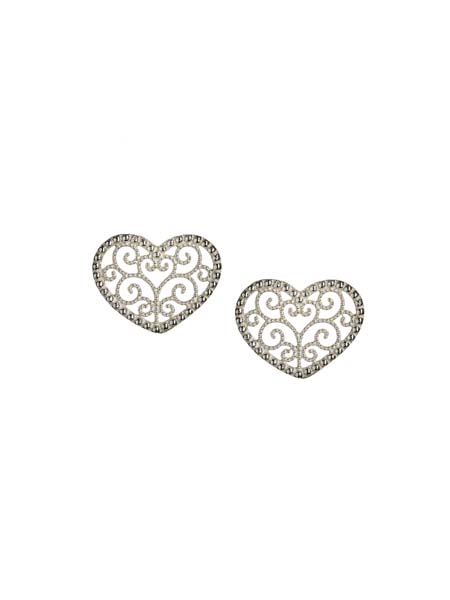 Naisten kotimaiset hopeiset sydänkorvakorut. Lempikoru Sydämellinen nappikorvakorut on valmistettu laadukkaasta 925 sterling-hopeasta. Filigraanikorvakorut ovat kooltaan 14 x 12 mm. Sydänkorvakoruissa on tukeva tappikiinnitys. Yhdistele korvakorut muiden Sydämellinen-sarjan korujen kanssa ja luo koruista kaunis kokonaisuus!