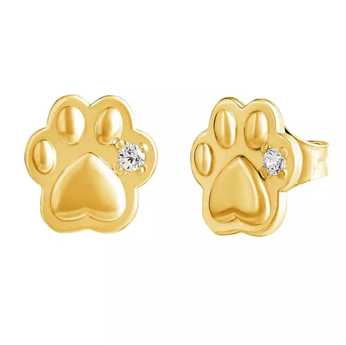 Kullatut hopeiset tassun muotoiset korvakorut, joita koristavat kirkkaat zirkonia-korukivet. Hopeakorvakorun koko on 9 x 8 mm. Korvakoruissa on tukeva ja luotettava tappikiinnitys. Materiaali on laadukas nikkelitön 925 Sterling-hopea, mikä on keltakullattu. Sopivat eläinten ystäville, niin lapsille kuin aikuisillekin!