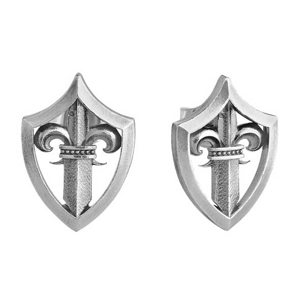 Kotimaiset hopeiset korvakorut. Turva korvakorujen muotokieli on vaakunamainen, jonka keskellä kiteytyy miekan ja kruunun muotoon usko, viisaus ja ritarillisuus. Korvakorut on patinoitu tumman sävyisiksi. Tummennus tuo koruun syvyyttä. Koruosan koko on 12 x 10 mm ja niissä on napakka tappikiinnitys. Yhdistä Lempikoru Turva korvakorut saman sarjan riipuksien kanssa!