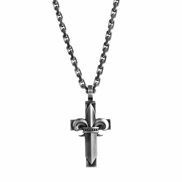 Miesten hopeinen ristikaulakoru tyylikkään tummalla patinoidulla pinnalla. Hopearisti on kooltaan 31 x 21 mm. Riipuksen hopeaketju on 55 cm pitkä. Kaulakoru on valmistettu laadukkaasta 925 sterling-hopeasta.