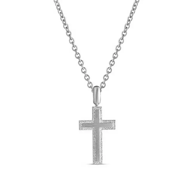 Hopeinen ristiriipus. Tässä Lempikorun Valo ristissä yhdistelty rohkeasti erilaisia pintoja. Kolmiulotteisessa Valo ristissä on kuin kaksi ristiä päällekkäin; pienempi risti on koholla taustan isommasta rististä. Ristin korkeus on 26 mm ja leveys 12 mm ja riipuksessa on säädettävä 45/50 cm pitkä ketju. Tätä riipusta on saatavilla kirkkaana versiona, tummennettuna sekä keltakultapinnoitettuna. Valo ristiriipus on tyyliltään suoralinjainen koru, joten se sopii hyvin miesten koruksi tai pelkistetystä tyylistä pitävälle henkilölle. Symboliikkansa puolesta koru sopii hyvin rippiristiksi ja kokonsa puolesta on myös hyvä valinta rippiristiksi tytölle. Korun eri versiot sopivat hyvin erilaisista tyyleistä pitäville!