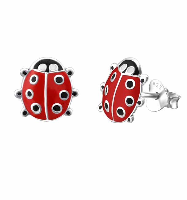 Lasten punaiset leppäkerttu-korvikset! Suloiset lasten hopeiset leppäkerttu hopeakorvakorut. Korvakoruissa on luotettava tappikiinnitys. Korvakorujen koko on 9 x 10 mm. Sirot ja kevyet nappikorvakorut, joita lapsi voi käyttää arjessa! Korvakorujen valmistusmateriaali on laadukas nikkelitön 925 sterling hopea.
