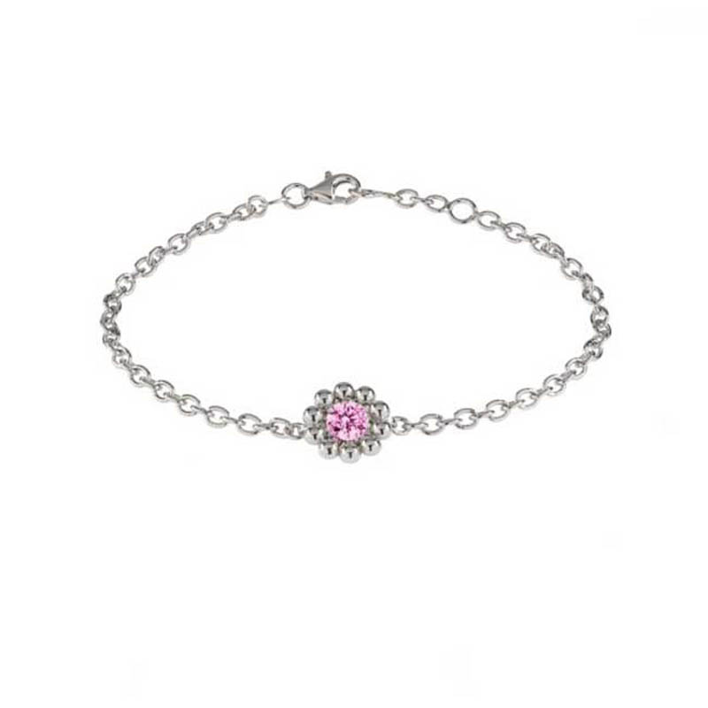 Daisy naisten hopeinen rannekoru on valmistettu 93 prosenttisesti kierrätetystä hopeasta. Sirossa rannekorussa on säädettävä pituus 18/19,5 cm. Rannekorua koristaa kukkaa muistuttava koruosa, jossa on koristeena pinkki zirkoniakivi. Daisy-sarjan korut sopivat erinomaisesti rippi- tai valmistujaislahjaksi nuorelle, mutta myös kaikenikäisille sirojen korujen ystäville. Yhdistele rannekoru samaan sarjaan kuuluvien riipuksen, korvakorujen ja sormuksen kanssa luodaksesi kauniin kokonaisuuden!