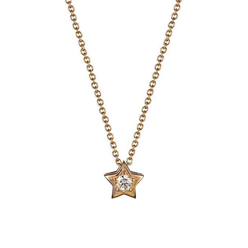 Kotimainen naisten tähden muotoinen kultainen timanttikaulakoru. Tämä kultainen tähtiriipus on valmistettu kierrätetystä 14 karaatin keltakullasta ja sen keskellä säihkyy 0,10 ct timantti. Timanttiriipuksen koko on 8 x 7 mm. Kultaketjun pituus on valittavissa vaihtoehdoista 45 cm ja 50 cm. Ihana klassinen korumalli säihkyvällä viimeistelyllä!