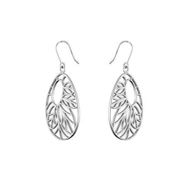 Naisten hopeiset korvakorut koukkukiinnityksellä. Roikkuvien korvakorujen koko on 25 x 42 mm. Greta-sarjan näyttävämmät korvakorut ovat miellyttävät käyttää keveytensä vuoksi.