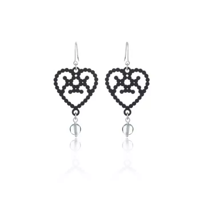 Näyttävät ja kevyet naisten puiset korvakorut. Mustat Helmi-puukorvakorut ihastuttavat koristeellisuudellaan. Korvakorun koko on 30 x 47 mm. Korvakoruissa on koukkukiinnitys.