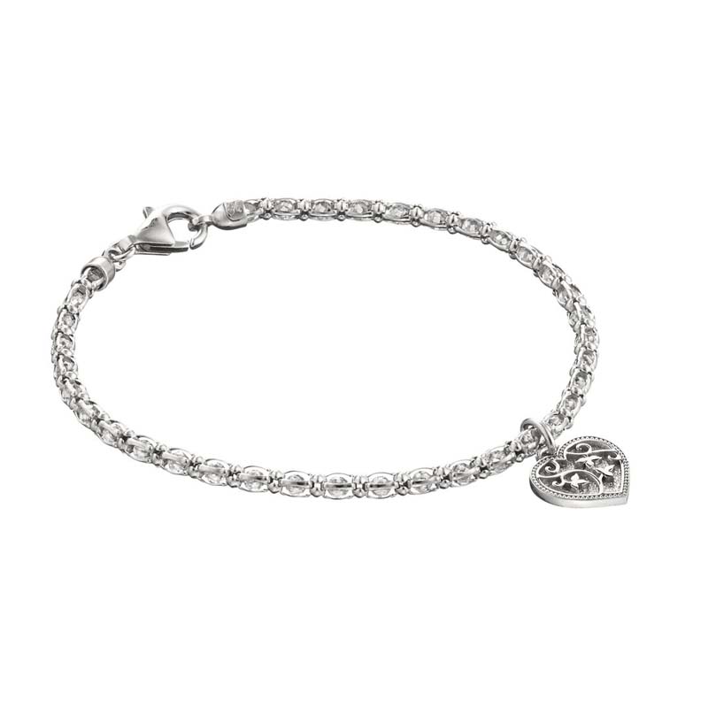 Kotimainen naisten hopeinen rannekoru. Kaunis sydänrannekoru on valmistettu laadukkaasta 925 sterling-hopeasta. Sydämen koko on 11 x 12 mm. Ainutlaatuista hopeaketjua koristavat kirkkaat zirkonia-korukivet. Ketjun pituus on valittavissa vaihtoehdoista 18 cm ja 19,5 cm. Ihana hopeinen käsikoru niin lahjaksi kuin itsellekin!