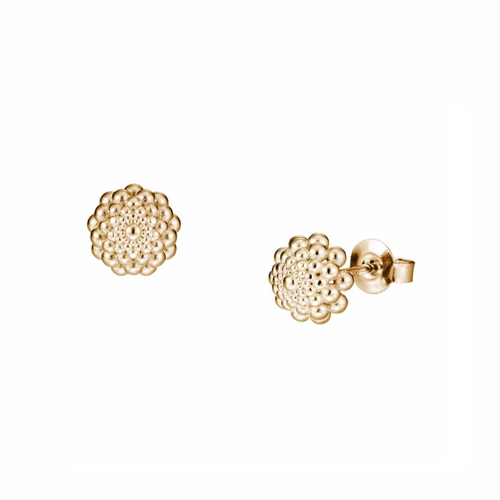 Kotimaiset kultaiset korvakorut. Kultakorvakorut kuvaavat herkullisen näköisiä marjoja, ja niiden muotoilu on pehmeä ja kiehtova. Valmistusmateriaali on 14 karaatin keltakulta. Kultakorvakorun halkaisija on 8 mm. Ihanat luottokorvakorut niin arkeen kuin juhlaan!
