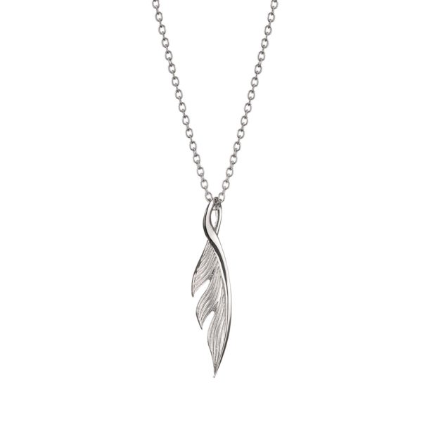 Kotimainen naisten hopeinen kaulakoru höyhenriipuksella. Höyhentä kuvaava hopeariipus on herkän kaunis ja sopii moneen tyyliin. Höyhen symboloi monia asioita, ja sille voikin luoda itse oman merkityksensä. Riipuksen koko on 8 x 37 mm. Hopeisen ketjun pituus on säädettävissä pituuksiin 45 ja 50 cm. Ihana hopeakaulakoru, joka sopii niin arkeen kuin juhlaan!