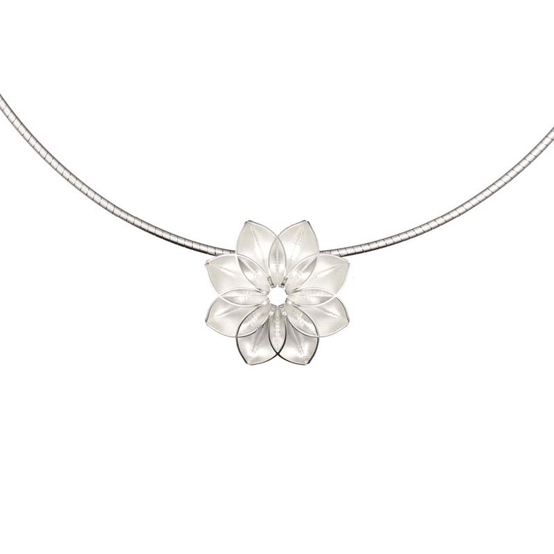 Hurmaava naisten hopeinen riipus. Hopeariipus kuvaa kaunista, vaaleaa kukkaa. Näyttävä kukkariipus istuu kauniisti kaulalla hopeisessa jäykässä omegaketjussa, jonka pituus on 45 cm. Hopeisen riipuksen koko on 25 x 25 mm. Upea kaulakoru viimeistelemään asu kuin asu tai juhlaan!