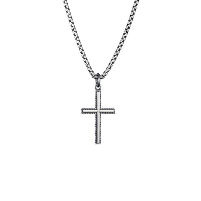 Rouhean pelkistetty hopearisti. Lumoavan Ilmari risti on valmistettu nikkelivapaasta sterling-hopeasta ja siinä on tummaksi oksidoituja yksityiskohtia. Tämä pelkistetty koru sopii kaikenikäisille miehille tai maskuliinisemmasta tyylistä pitävälle naiselle. Ison ristin mitat on 19 x 34 mm ja riipuksen ketjun pituus on 50 cm. Ilmari ristiriipus on hyvä rippiristi nuorelle! Ristin taakse mahtuu kaiverrus.
