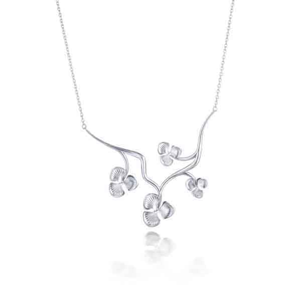 Lumoava Kukinto hopeisesta kaulakorusta löytyy täyteen loistoonsa puhjenneiden kukkien muoto, joka viestii ympärilleen toivoa, rakkautta ja uskoa uusiin alkuihin. Tämän näyttävän kaulakorun leveys on 85 mm ja korkeus 70 mm. Hopeaketjun pituus on kätevästi säädettävissä pituuksiin 45 cm ja 50 cm. Kaulakoru on valmistettu laadukkaasta 925 sterling-hopeasta.