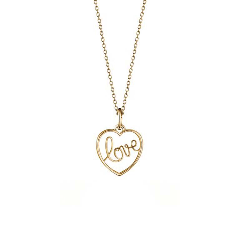 Kotimainen naisten kultainen kaulakoru. Tässä kultariipuksessa lukee kaunokirjoituksella "love", eli rakkaus. Valmistusmateriaali on 14 karaatin keltakulta. Kultaisen riipuksen koko on 14 x 15 mm. Kultaketjun pituus on valittavissa vaihtoehdoista 45 cm ja 50 cm.