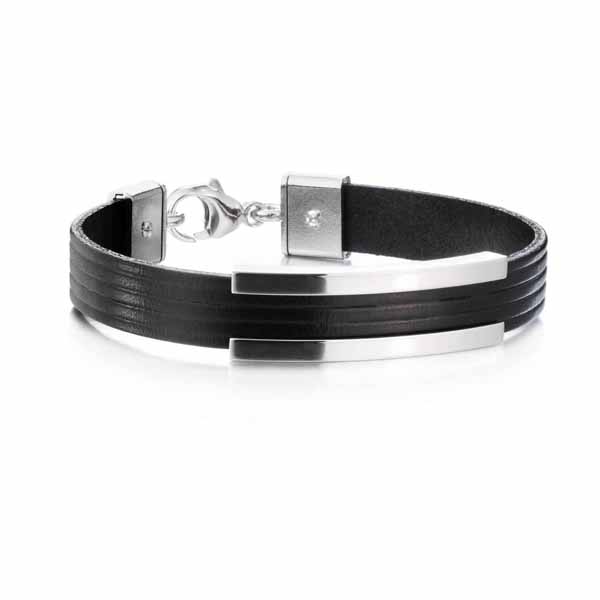 Pelkistetyn tyylikäs miesten nahkainen rannekoru hopealaatalla. Hopeisen koruosan koko on 40 x 12 mm. Ranekorun nahkanauhan pituus on valittavissa vaihtoehdoista 19,5 cm ja 21 cm. Rannekorun hopealaatan ja lukon materiaali on laadukas 925 sterling-hopea. Nahkanauha on aitoa nahkaa mustassa sävyssä.