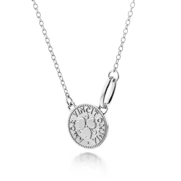 Kotimainen naisten hopeinen riipus. Lumoava Penny kaulakorun kolikon muotoisen koruosan koko on 14 x 23 mm. Ketju on kätevästi säädettävissä pituuksiin 45 cm sekä 50 cm. Lumoava Penny kaulakoru on valmistettu 100-prosenttisesti kierrätetystä hopeasta.