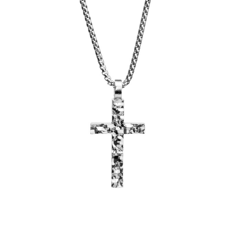 Rosoinen ja rouhea hopearisti. Tästä Lumoavan Polku rististä on kaksi versiota; kirkas ja tummennettu. Ristin etuosa on kokonaan eläväistä ja rosoista pintakuviota. Näyttävän ristin korkeus on 30 mm, riipusketjun pituus on säädettävä 42/45/50 cm. Lumoava Polku risti on tarinansa puolesta erinomainen rippiristi nuorelle, kokonsa puolesta tämä risti sopii pojalle tai miksei myös isompaa ristiä haluavalle tytölle. Ristin taakse mahtuu kaiverrus.